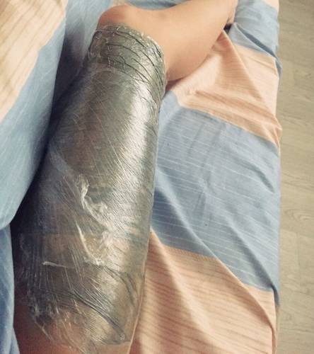 По окончанию моего кайфа маска успешно была смыта в душе. Это оказалось очень легко и просто, а кожа после обертывания как у младенца. Завершающим штрихом нужно нанести любой увлажняющий кремчик или лосьон для тела на то место, где была пленка с маской.