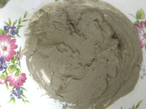 - Развожу 3 столовых ложки глины теплой водой до состояния сметаны, пропорция 2/1.