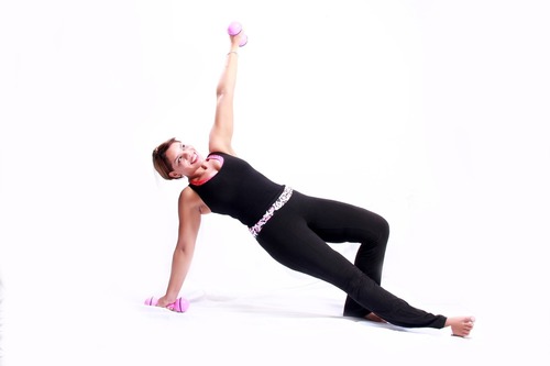 - Руки с гантелями направлены вдоль тела. Начать следует с наклонов в сторону, опускаясь максимально низко, чтобы прокачать мышцы живота.