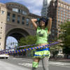 - На одной ноге. Встаньте прямо, сгибаясь в области талии, возьмите колесо за обе рукоятки. Вытягивайте руки и катитесь вперед. Следите, чтоб спина была прямой. Вернитесь в исходное положение, встав на одну ногу и прогнувшись в пояснице.
