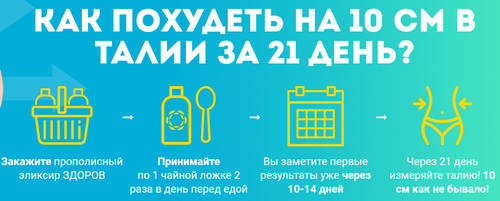 - Обязательный спорт и диета. Вы не похудеете, если не будете соблюдать правильное питание и выполнять физические нагрузки. Производитель прополисного эликсира «Здоров» здесь лукавит, утверждая, что его продукт не нуждается в комплексном применении.