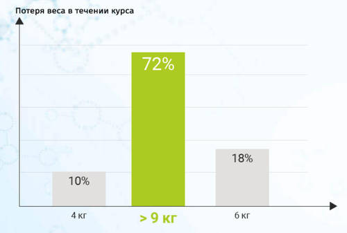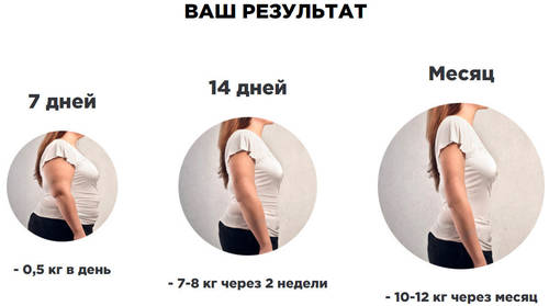 - Быстрая эффективность. Первые результаты появляются уже через неделю. При правильном применении препарата для похудения, за месяц можно избавиться от 10 кг.