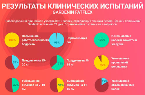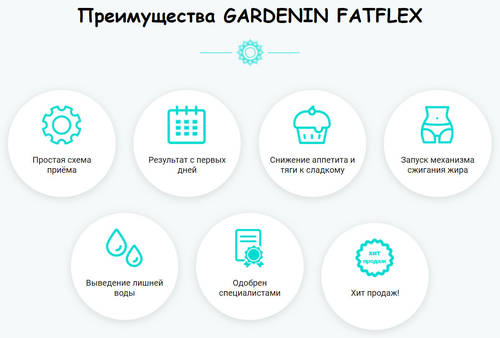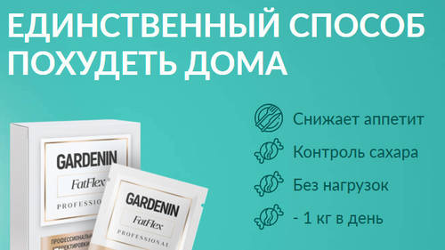 - Похудение без усилий. По данным производителя, порошок разработан специально для тех, кто ведет малоподвижный образ жизни и имеет низкую физическую активность. Gardenin FatFlex должен сжечь жир и избавить от отечности. Порошок для похудения сам стимулирует работу органов для борьбы с лишним весом.