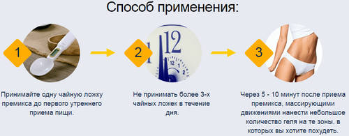 Способ приготовления средства прост — следует лишь утром развести чайную ложку порошка в стакане воды и выпить смесь перед завтраком. Через 5- 10 минут необходимо нанести разогревающий гель.