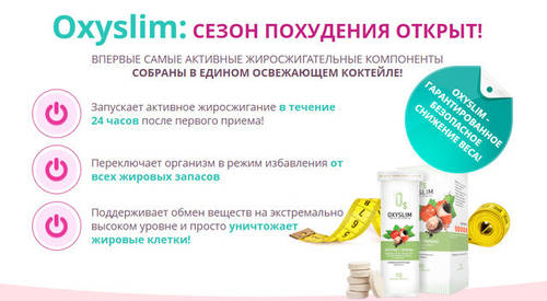 Пляжный сезон не за горами и женщины начинают поиски чудо-средства, которое помогло бы вернуться в форму. Добавка OxySlim (ОксиСлим) отвечает этому требованию, к тому же, по словам производителя, является абсолютно безопасным средством. Он обещает, что за короткий срок препарат поможет обрести фигуру мечты. И это без диет и тренировок.
