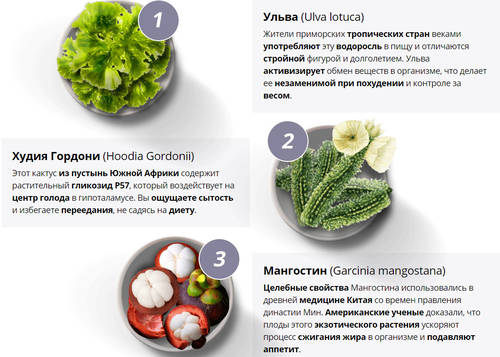 Несколько ингредиентов мы разберем подробно, потому что они могут вам встретиться в составе других продуктов для похудения.