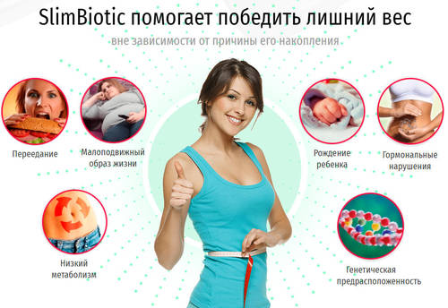 Не секрет, что диеты дают лишь временный результат, как только голодание прекращается, килограммы возвращаются. SlimBiotic — уникальный комплекс, который обеспечивает быстрое, эффективное и безопасное похудение. Теперь подготовиться к пляжному сезону или похудеть к определенной дате не составит труда вместе со СлимБиотик.
