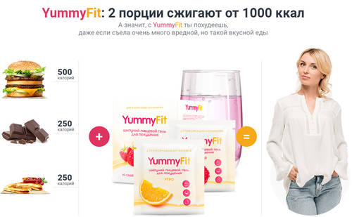 Таким образом, YummyFit имеет в составе только натуральные жиросжигающие компоненты, которые запускают процессы похудения, нейтрализуют жировые отложения.