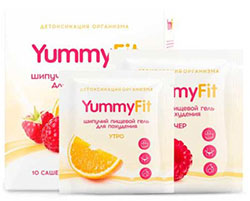 YummyFit отличается нехитрой схемой действия. Продукт продается в виде шипучего пищевого геля, который стоит принимать утром, вечером.